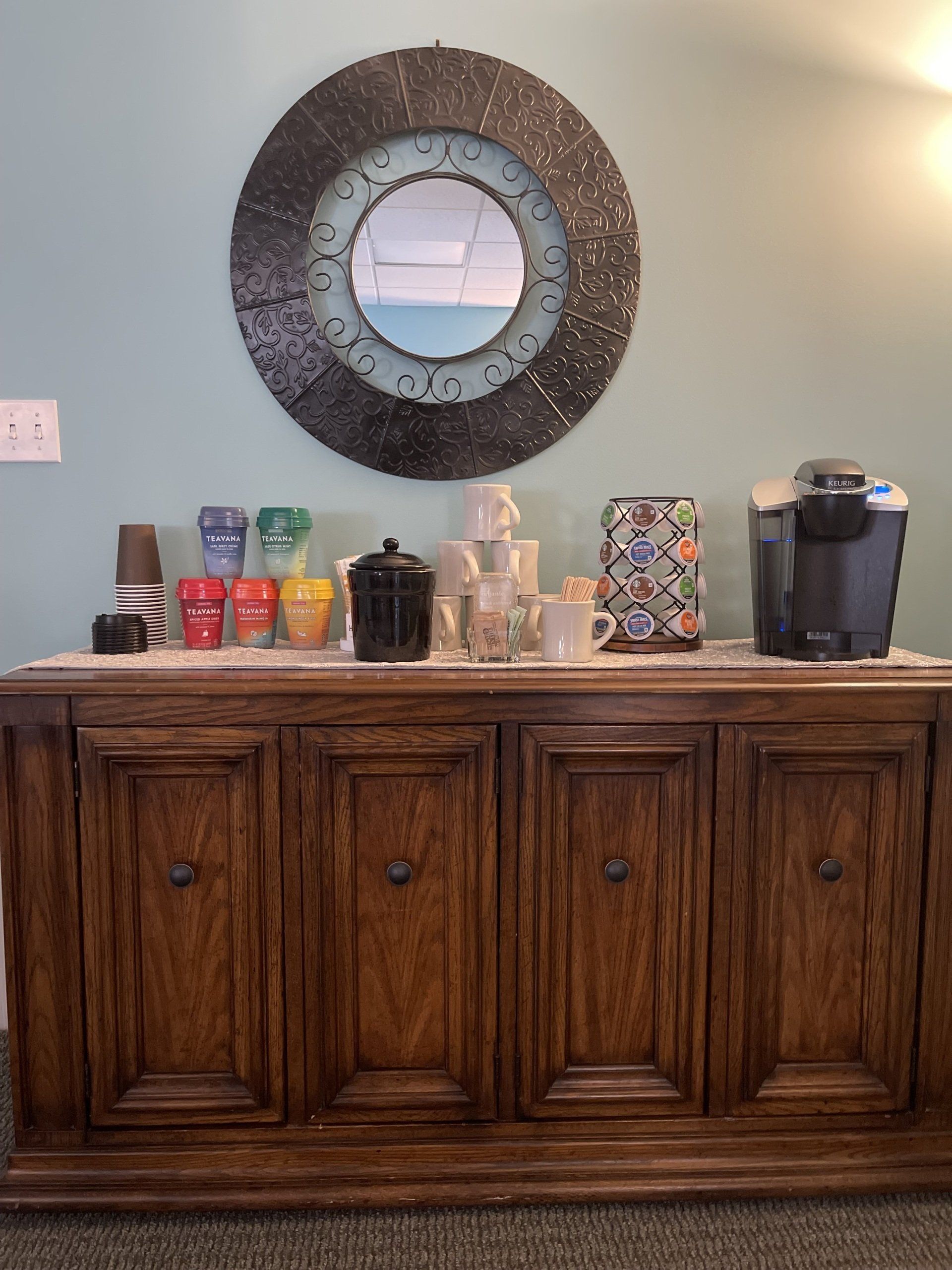 ButtonHelp yourself to a complimentary tea or coffee after your service or class. We have mugs and to-go cups for your convenience.