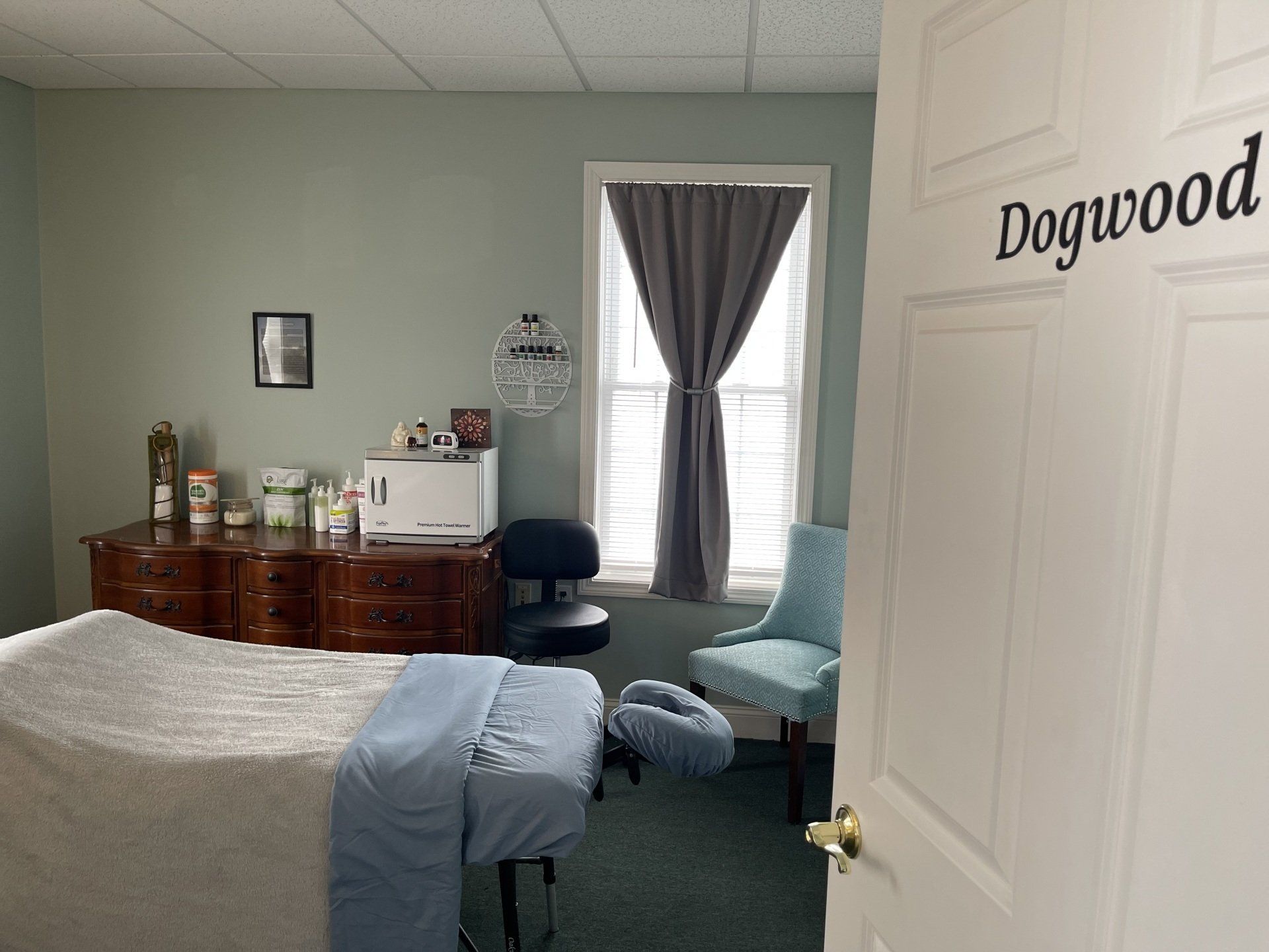 ButtonOur largest treatment room, suitable for couples massage. We also have a prenatal table with removable insert to make your pregnancy massage more comfortable.